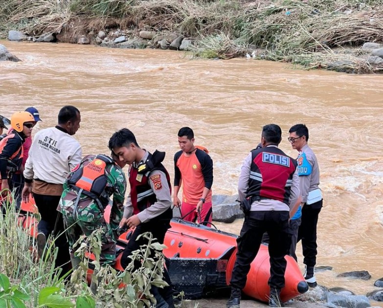 Upaya ini juga melibatkan relawan dari *Santana (Santri Tanggap Bencana) SPMAA*, perangkat desa, serta tokoh masyarakat. Pencarian difokuskan pada titik-titik rawan dan sepanjang aliran sungai yang berpotensi menjadi lokasi terhentinya korban.