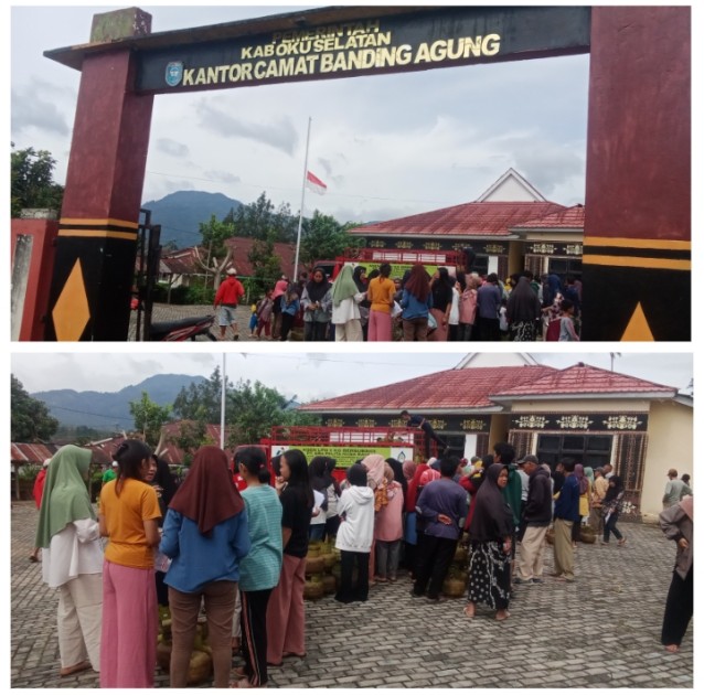 Kegiatan yang berlangsung pada Pukul 9:30 WIB Rabu,4 Maret 2026 di Lapangan Kantor camat Banding Agung Warga tampak antusias mendatangi lokasi sejak pagi hari untuk mendapatkan gas bersubsidi dengan harga yang telah ditentukan pemerintah.